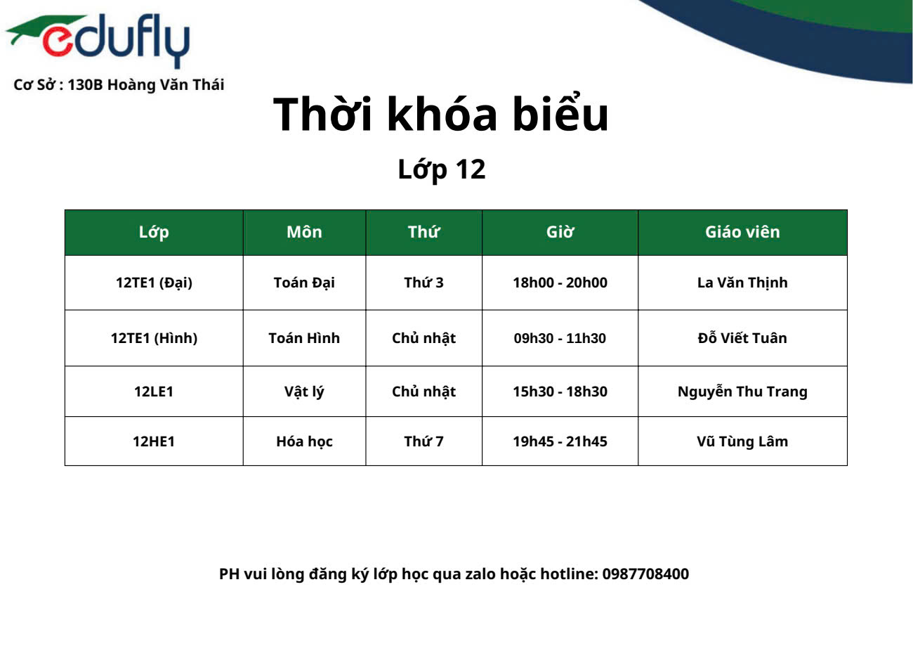 Lớp toán 12 tại Edufly Hoàng Văn Thái