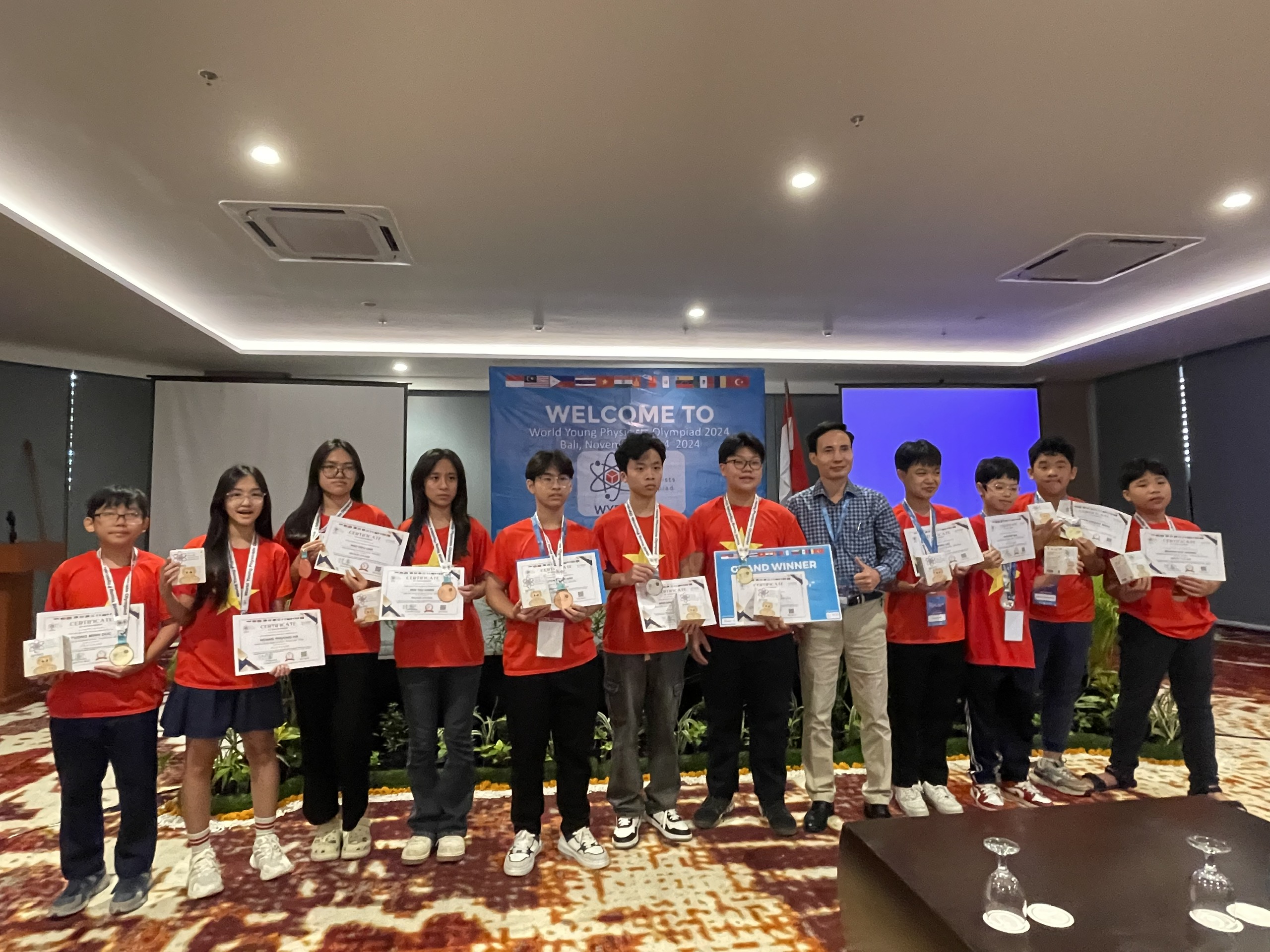 Tại Kỳ thi Olympic Vật lý trẻ thế giới WYPO 2024, học sinh Việt Nam đạt: 1 quán quân, 4 Huy chương Vàng, 3 huy